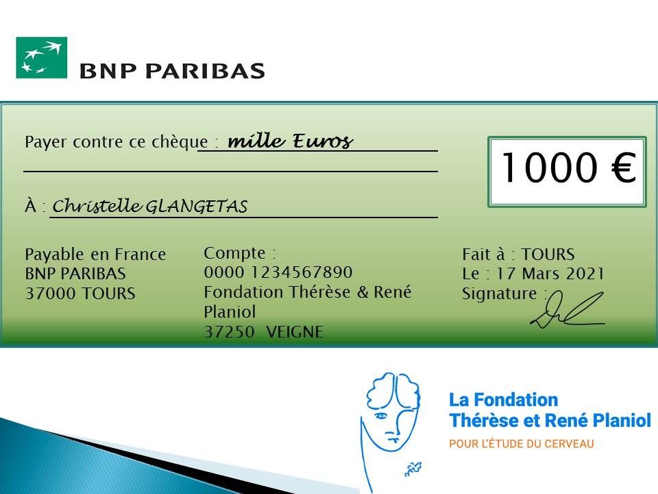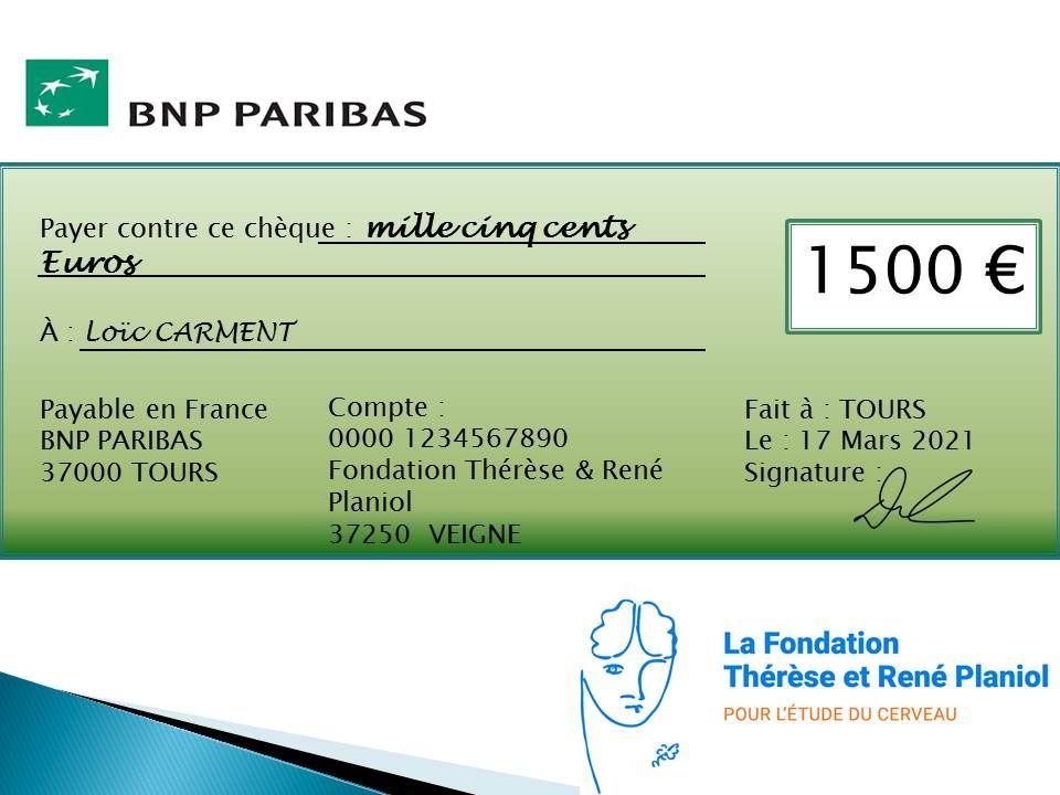 A l'occasion de la Semaine du Cerveau, la Fondation Thérèse et René Planiol en association avec le club Inner Wheel de Tours a remis le Prix Thérèse Planiol à trois Jeunes Chercheurs : Dr. Loïc CARMENT (2019), Dr. Federica CACCIAMANI (2020), Dr. Christelle GLANGETAS (2020).